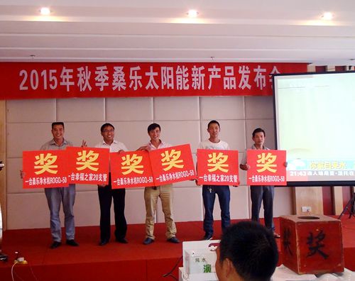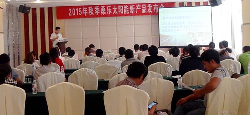 日前,桑樂(lè)公司2015年秋季太陽(yáng)能新品發(fā)布會(huì)在貴州省興義市舉行,40余位鄉(xiāng)鎮(zhèn)經(jīng)銷商參加了此次會(huì)議。會(huì)議的主題是“發(fā)展終端,布局終端,決勝終端?!?br />
