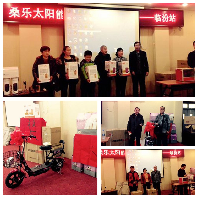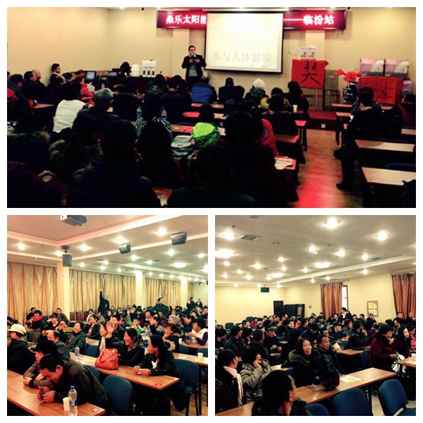 促銷活動(dòng)選擇在臨汾市區(qū)中心位置平遙賓館,場(chǎng)面非?;鸨?,活動(dòng)當(dāng)天到場(chǎng)人數(shù)150余人?;顒?dòng)開始后,首先由山西市場(chǎng)部張繼鵬經(jīng)理向到場(chǎng)客戶介紹了桑樂綠能集團(tuán),并詳細(xì)講解了桑樂太陽(yáng)能的優(yōu)勢(shì)及當(dāng)天活動(dòng)內(nèi)容,激發(fā)了意向客戶的購(gòu)買欲望。接著,由王軍經(jīng)理向到場(chǎng)客戶講解、演示了桑樂凈水機(jī),通過電解自來(lái)水和純凈水讓客戶直觀感受到水質(zhì)的差別,客戶對(duì)桑樂凈水機(jī)產(chǎn)生了濃厚的興趣。到場(chǎng)客戶情緒高漲,許多客戶踴躍繳納定金,紛紛表示要將桑樂健康水帶回家?;顒?dòng)最后,為了回饋桑樂新用戶,進(jìn)行了抽獎(jiǎng),中獎(jiǎng)?wù)甙l(fā)放了購(gòu)機(jī)禮品。