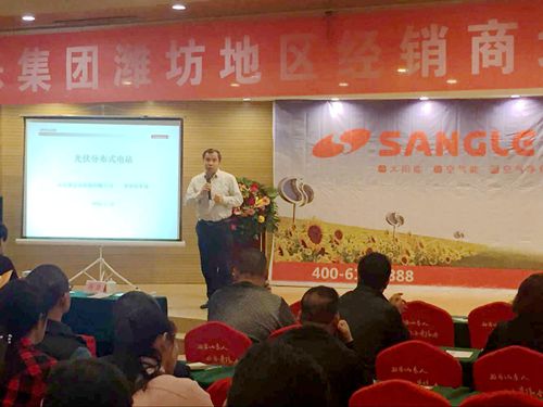 日前,桑樂(lè)山東濰坊地區(qū)經(jīng)銷商培訓(xùn)動(dòng)員大會(huì)在濰坊圣基大酒店順利舉行,桑樂(lè)集團(tuán)公司副總馮磊、光伏事業(yè)部經(jīng)理?xiàng)罟鸺t蒞臨了本次會(huì)議,并做了重要講話和培訓(xùn)。