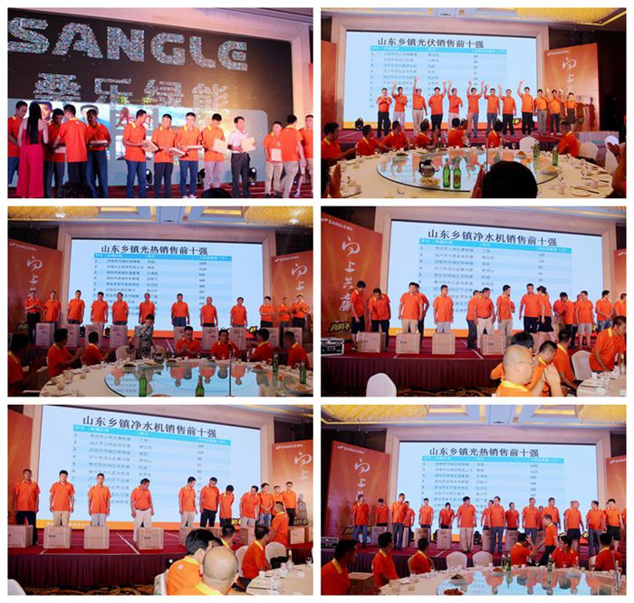 會后,集團進行了600多人的大聚餐,并對山東省鄉(xiāng)鎮(zhèn)光熱銷售、凈水機銷售、光伏銷售前十強分別進行了表彰,進行了微信抽獎,大會在歡快的歌舞表演中結(jié)束。