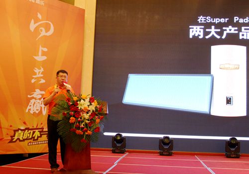 隨后,集團副總馮磊做了《桑樂全流道超能板集熱器》的精彩分享。馮總指出,目前桑樂全流道超能板全國銷量已經(jīng)突破1個億,桑樂要用匠心制造美好,用匠心普及美好。桑樂和中國工業(yè)設(shè)計第一品牌——瑞德設(shè)計股份有限公司合作,優(yōu)勢資源相整合,打造專業(yè)、有科技感的公司,實現(xiàn)頂尖品牌合作,強強聯(lián)合,桑樂每一次突破就是要跟以往確實不一樣。