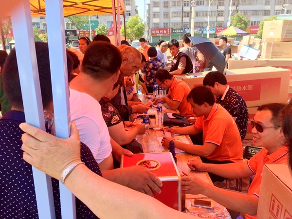 冒著六月酷暑,大家積極參與,阜陽(yáng)市太和縣經(jīng)銷商都參加了這場(chǎng)團(tuán)購(gòu)會(huì),活動(dòng)現(xiàn)場(chǎng)積極活躍,桑樂全系列產(chǎn)品都得到大力推廣。活動(dòng)現(xiàn)場(chǎng)有桑樂太陽(yáng)能新品,光伏家庭電站、凈水機(jī)、電熱水器等。考慮到當(dāng)天35度的高溫,現(xiàn)場(chǎng)設(shè)置了專門的遮光休息區(qū),并配備了扇子、遮陽(yáng)傘,給客戶提供了一個(gè)舒適的購(gòu)物環(huán)境。
