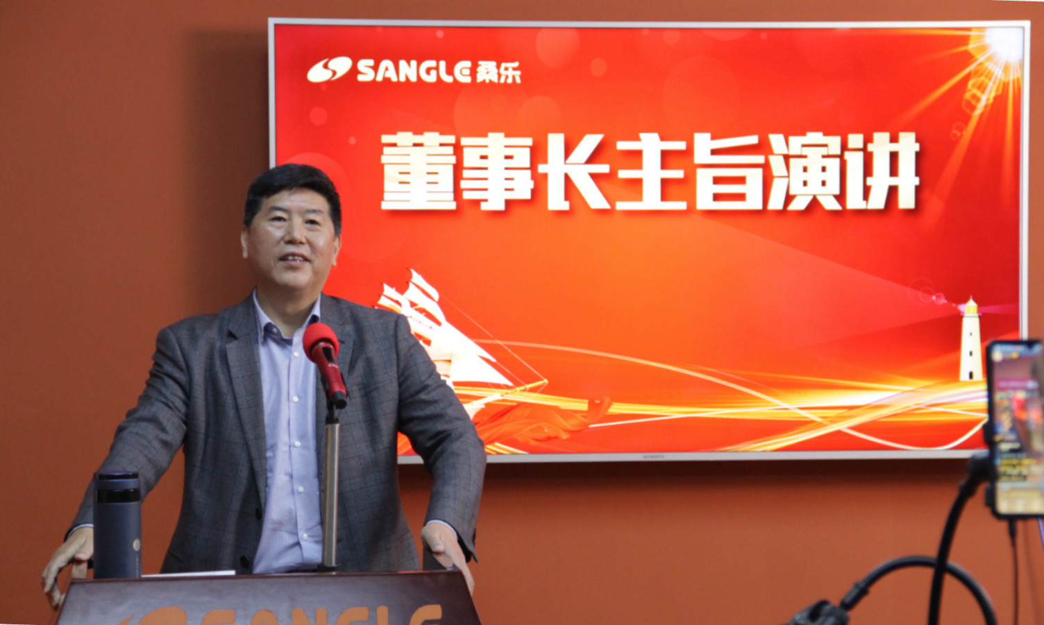 會(huì)議首先由董事長給大家?guī)砹吮敬螘?huì)議的主旨演講。王董事長首先對在全國各地,在屏幕另一端的各位桑樂家人們表示歡迎,同時(shí)提醒大家疫情期間依舊要保持警惕,提高防疫意識(shí)和措施。雖然此次聚會(huì)形式有所變化,但董事長與桑樂家人們間的感情和關(guān)系卻依舊溫暖如初不曾改變,在董事長發(fā)表主旨演講期間,直播間的會(huì)議氣氛和同時(shí)在線人數(shù)也達(dá)到了最高峰。隨后董事長結(jié)合疫情期間桑樂集團(tuán)積極承擔(dān)社會(huì)責(zé)任、復(fù)工復(fù)產(chǎn)、線上營銷升級轉(zhuǎn)型工作做了強(qiáng)調(diào)和交流,強(qiáng)調(diào)桑樂轉(zhuǎn)型道路堅(jiān)定不移,是我們順勢而為收復(fù)失地的必經(jīng)之路。董事長號召各位家人們積極跟上節(jié)奏,鍛造線上營銷技能,共同交出一份所有人都滿意的線上成績單。另外,董事長在字里行間都始終強(qiáng)調(diào)對經(jīng)銷商的服務(wù)能力和服務(wù)滿意度,強(qiáng)調(diào)集團(tuán)要以服務(wù)好經(jīng)銷商為工作重點(diǎn),并圍繞這個(gè)重點(diǎn)展開產(chǎn)品研發(fā)、服務(wù)響應(yīng)、經(jīng)營布局等工作。董事長的精彩發(fā)言獲得了經(jīng)銷商家人們的充分肯定,直播間評論不斷禮物連連。