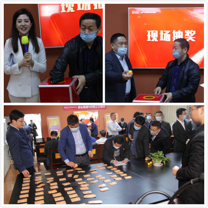 隨后董事長分別對在頒發(fā)了“營銷先鋒獎(jiǎng)”、“優(yōu)秀經(jīng)銷商獎(jiǎng)”兩大獎(jiǎng)項(xiàng),獲獎(jiǎng)榮譽(yù)證書及獎(jiǎng)品由現(xiàn)場各區(qū)域分總代領(lǐng)并郵寄。隨后桑樂集團(tuán)常務(wù)副總經(jīng)理馮總給大家?guī)砹思瘓F(tuán)管理報(bào)告,號召全體桑樂人響應(yīng)董事長號召,完成五月六月線上營銷升級攻堅(jiān)戰(zhàn)。同往年春季客戶會(huì)一樣,集團(tuán)在會(huì)議上進(jìn)行了2020年春季新品的發(fā)布,集團(tuán)總經(jīng)理助理市場總監(jiān)國升和產(chǎn)品部丁海學(xué)給大家?guī)砹松沸缕飞铍娖鳌N房電器和電熱水器的新品發(fā)布儀式。另外,本次會(huì)議邀請了三位“營銷風(fēng)云人物”與集團(tuán)領(lǐng)導(dǎo)分別進(jìn)行了一對一互動(dòng)分享,交流線上營銷心得和經(jīng)驗(yàn)。隨著現(xiàn)場抽獎(jiǎng)券發(fā)放完畢,本次線上客戶會(huì)圓滿完成。
