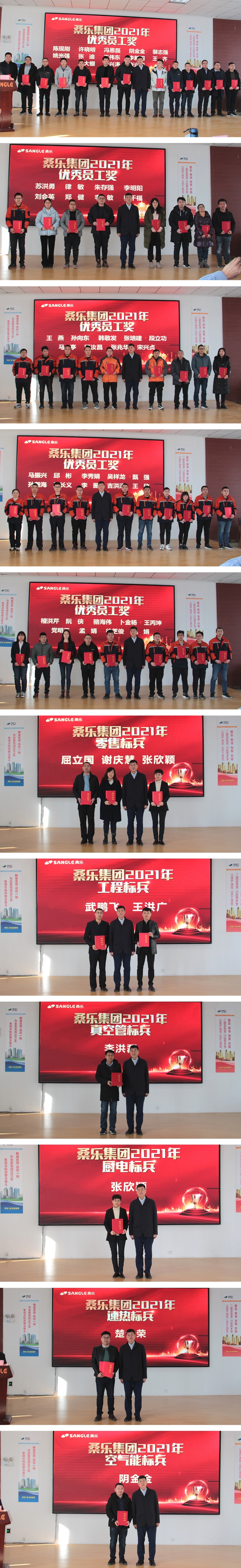 馮總宣讀了2021年優(yōu)秀員工、零售標(biāo)兵、工程標(biāo)兵、真空管家用機(jī)銷售標(biāo)兵、廚電銷售標(biāo)兵、電熱銷售標(biāo)兵、速熱銷售標(biāo)兵、空氣能銷售標(biāo)兵的獲獎(jiǎng)名單,董事長為獲得榮譽(yù)的職工頒發(fā)證書。